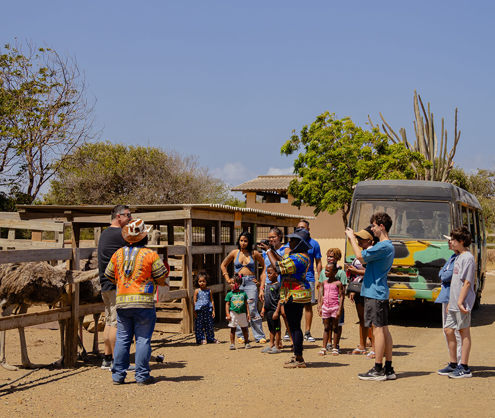 At the farm you will also find a couple of emu (Australian ostriches) and during the tour you will encounter potbellied pigs and Nile crocodiles. Wander around the farm to see our squirrel monkeys and birds in all colors imaginable. If you want to experience something out of the ordinary during your holiday, look no further! The Curacao Ostrich Farm is great fun for both kids and adults.